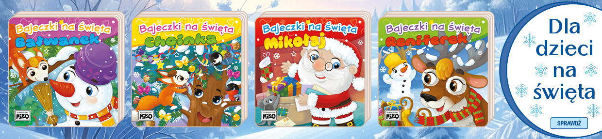 Książeczki BAJECZKI NA ŚWIĘTA powstały z myślą o najmłodszych czytelnikach. To seria czterech pogodnych i łatwo wpadających w ucho wierszyków o tematyce świąt Bożego Narodzenia i zimy. Przygody tytułowych bohaterów (Bałwanka, Choinki, Mikołaja i Reniferka) niosą ze sobą pozytywny przekaz. Piękne ilustracje rozwijają wyobraźnię dzieci i pomagają utulić je do snu. Bezpieczeństwo podczas czytania zapewniają zaokrąglone rogi książki, a trwałość tekturowe strony.